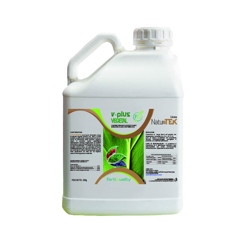 V-PLUS VEGETAl è un nuovo formulato a base di sostanza organica altamente assimilabile. I componenti fondamentali (amminoacidi vegetali a basso peso molecolare arricchito di alghe ed estratti vegetali) e acidi umici e fulvici, rendono il prodotto particolarmente assimilabile dalle radici. V-PLUS VEGETAL fonde la sostanza organca e gli amminoacidi con l’innovativa matrice MF 22. Il compound MF 22 è costituito da una selezione specifica di proteine del latte e aminoacidi vegetali a basso peso molecolare inferiore a 100Da riconisciuti rapidamente dalle piante in quanto della stessa famiglia. Il prodotto può essere impiegato per via fogliare e radicale.